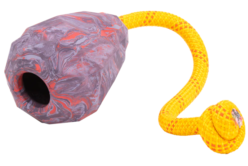 Tug, throw, fetch, repeat: The Huck-a-Cone™ was inspired by rewarding play between avalanche dogs and their handlers during training. Ruffwear took their popular Gnawt-a-Cone™ (rubber fetch & puzzle toy) and added a knotted rope handle, providing excellent grip during training drills and rewarding play.
