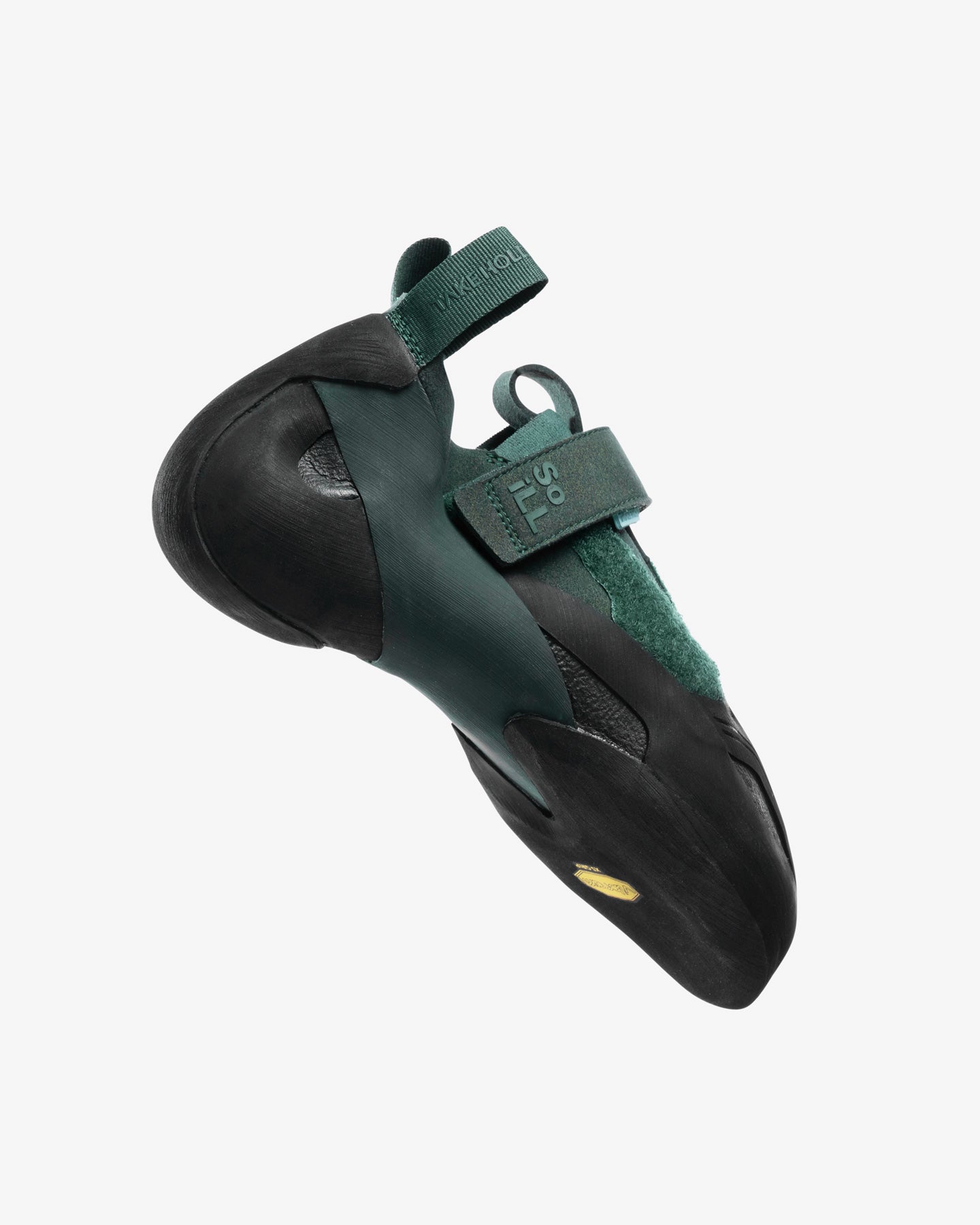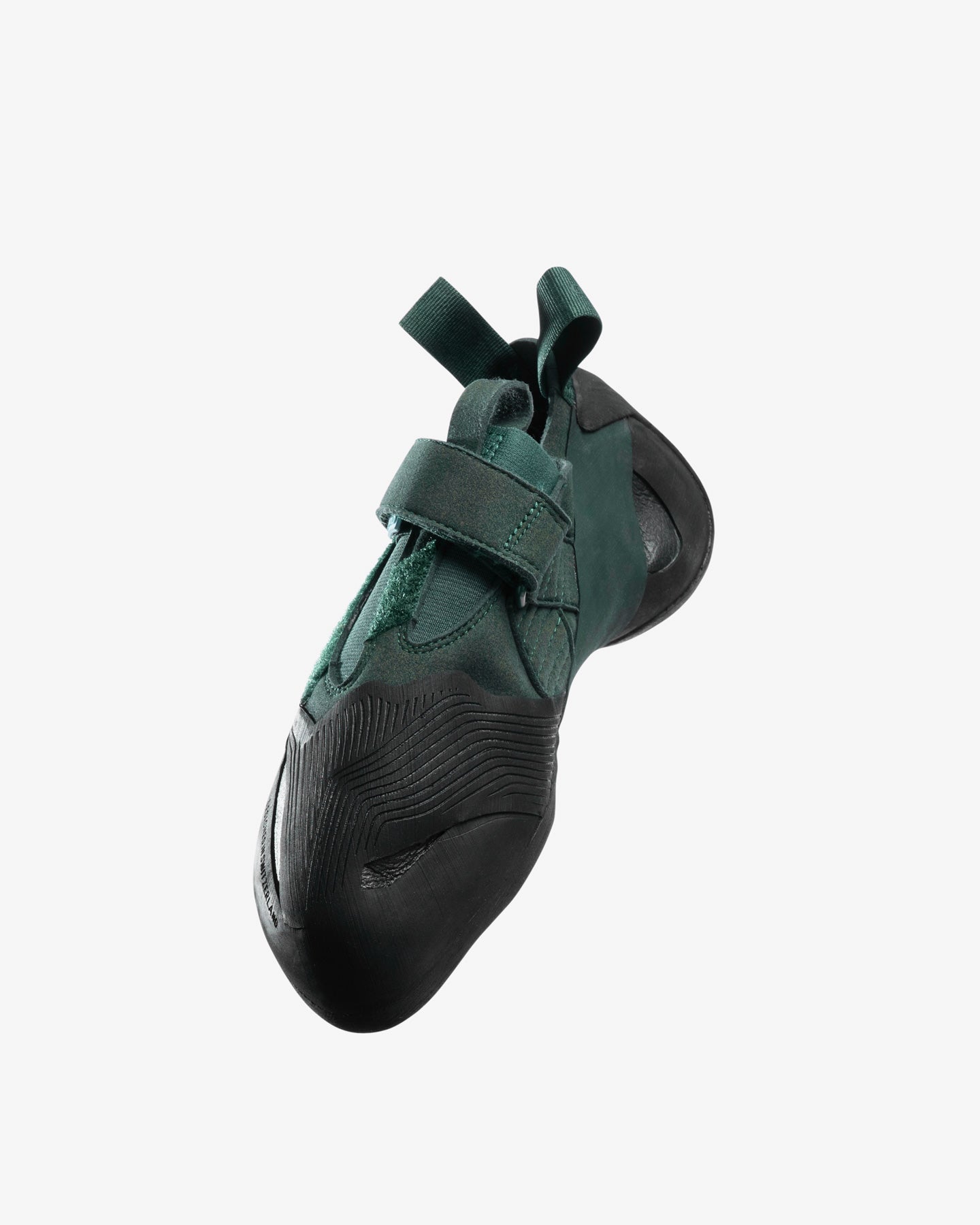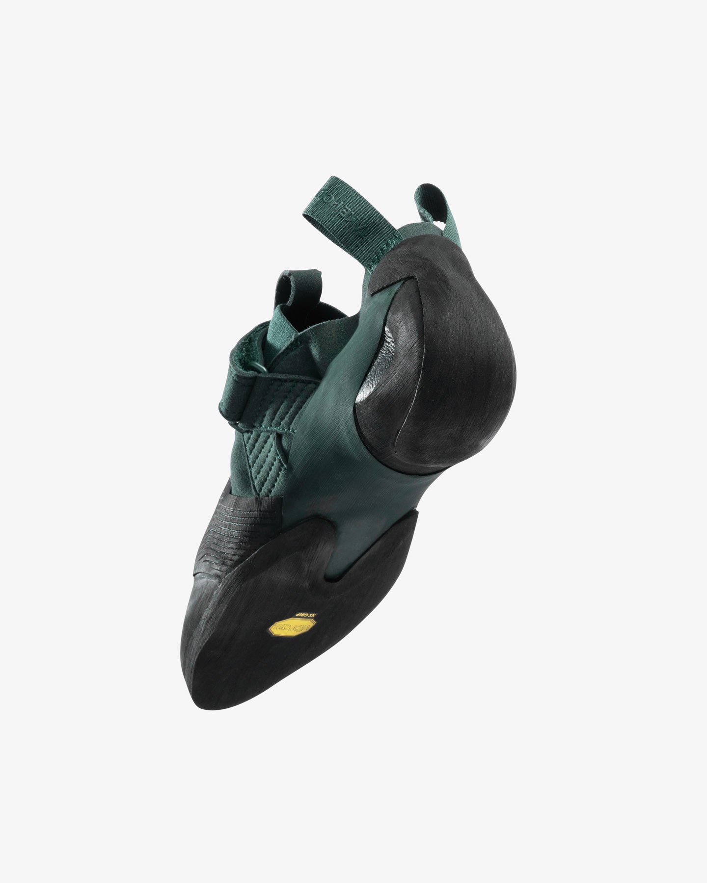 Designed and built on a hand-shaped, downturned last by Fred Nicole, TORQUE features a durable and comfortable, unlined vegan microsuede upper with an elastic integrated tongue and pull tab. The shape of the toe is ideal for precise footwork. The rubber is thick enough to feel stable but thin enough to maintain sensitivity. The midsole is composed of a proprietary molded board at the outer edges and runs through the center of the toe box creating stiffness. This mountain goat hoof shape allows for flexion in the midfoot while also releasing pressure. The unique single strap velcro closure gives you the freedom to change the direction of tension from ankle to mid-foot area to the base of the forefoot. The outsole is split and features Vibram XS GRIP rubber for durability while including generous toe/heel rubber coverage. The heel rubber extends to the top of the shoe. The unique width of the heel rubber enables this area to have the perfect balance of rigidity for maintaining solid heel hooks while allowing sensitivity and just enough flex. TORQUE is perfect for all your outdoor bouldering needs as well as indoor bouldering - specifically large volume climbing.
