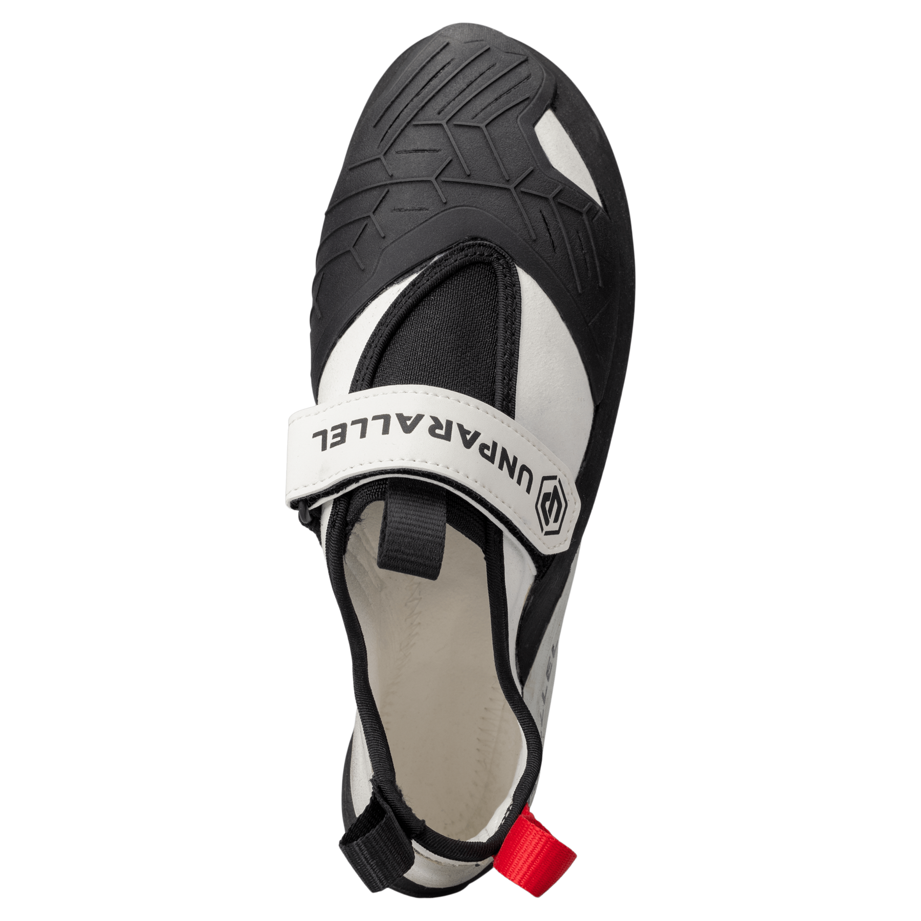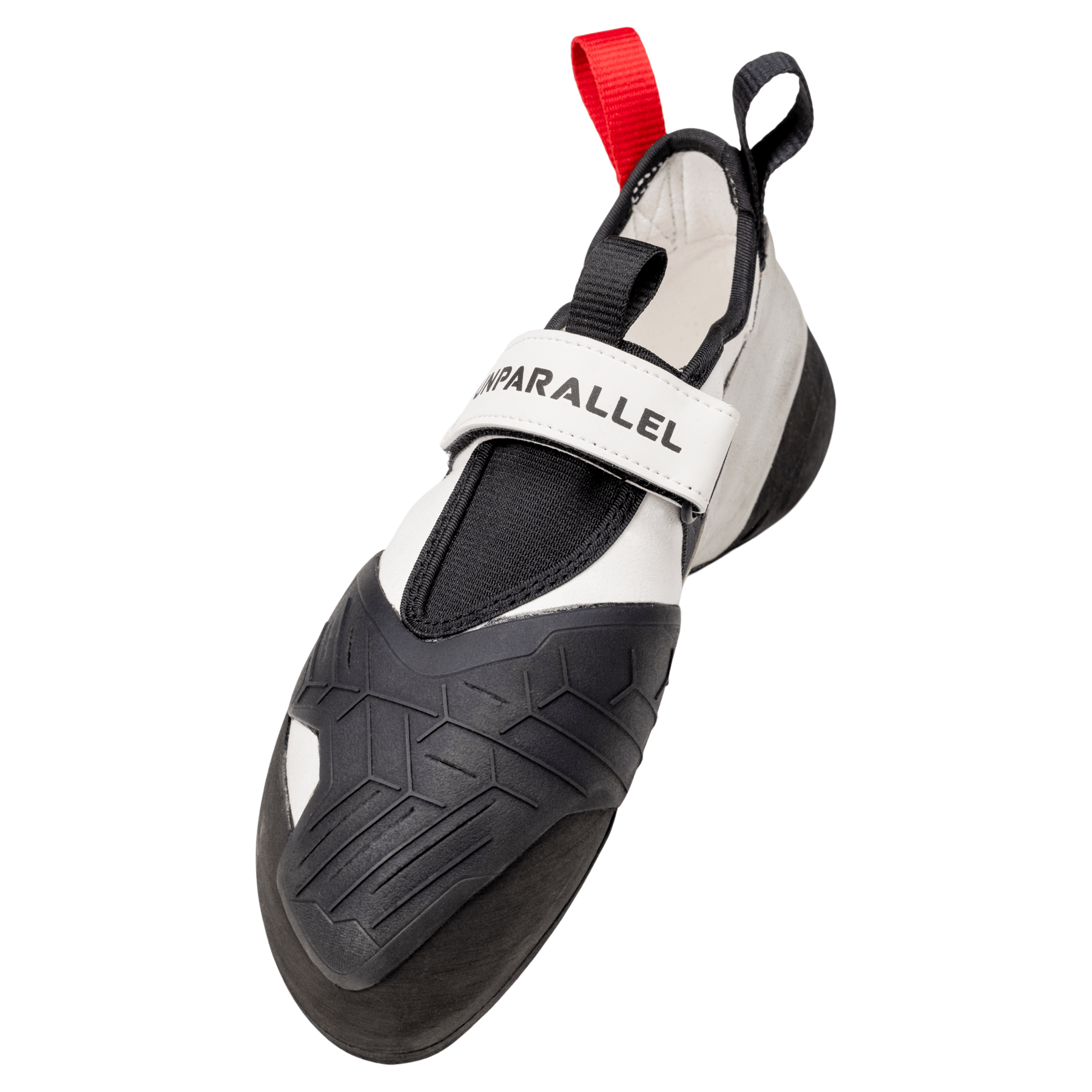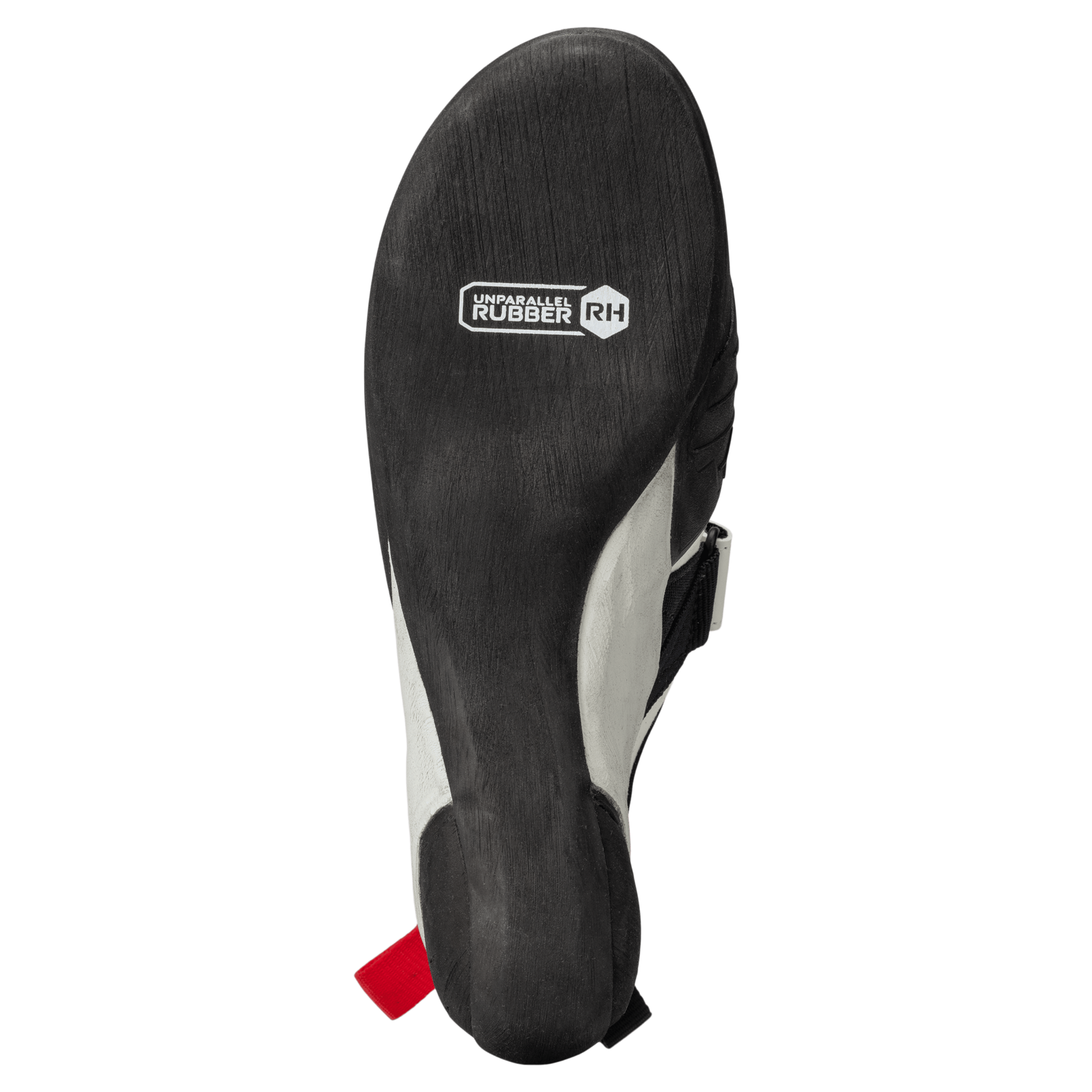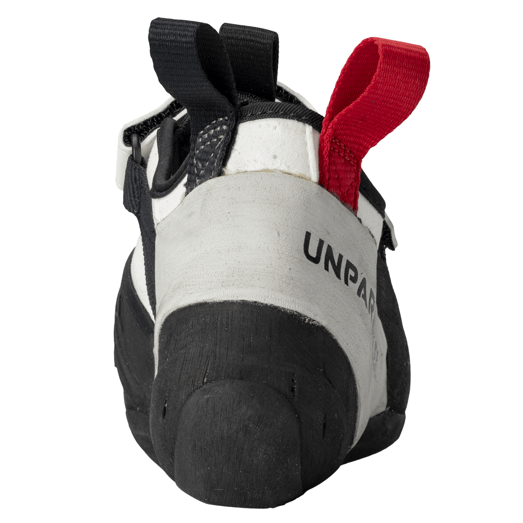 The Qubit offers a comfortable, moderate downturn ideal for climbers transitioning between gym and outdoor climbing. It combines a medium-stiff sole with durable RH rubber for reliable grip. The synthetic upper resists stretching, making the shoe a durable option for frequent climbers.